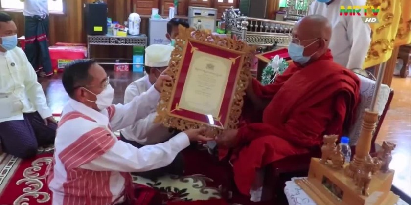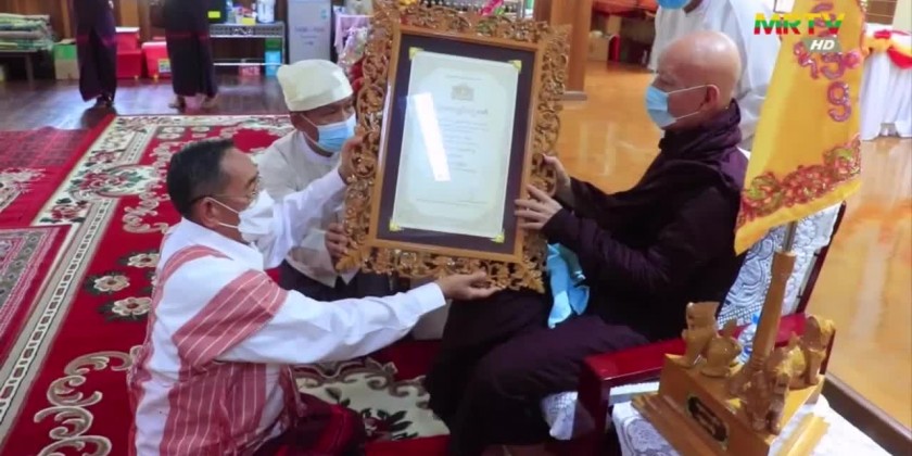 He then offered Agga Maha Saddhamma Jotikadhaja title, and offerings and donation of SAC Chairman Prime Minister Senior General Min Aung Hlaing and his family to the Sayadaw.