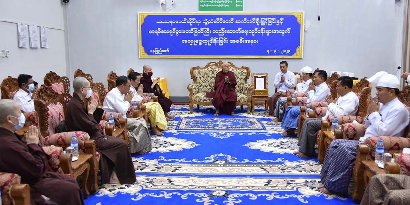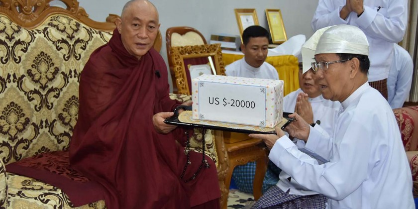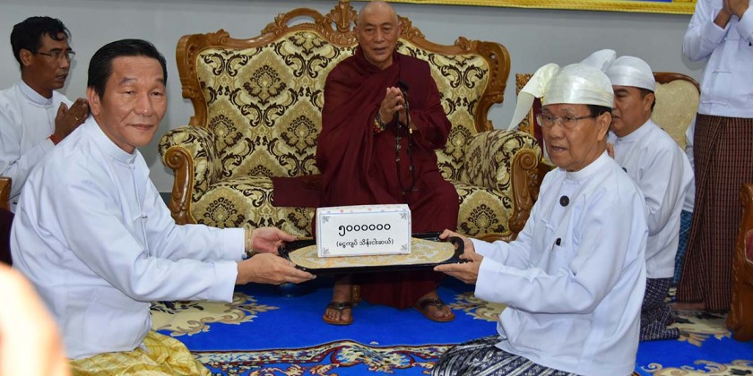 The ceremony was held at the Ministry of Religious Affairs in Nay Pyi Taw on Tuesday. At the ceremony, Maha Gantha Wasaka Pandita Title was conferred to the Presiding Sayadaw of Lin JuuTaung Buddhist Missionary in Hong Kong. Sayadaw also donated 20,000 USD for the construction of Maravijaya Buddha Image and the layperson of the Sayadaw donated 5 million kyats. Cash were also donated for AlaeTawyaDhammaWizaya SasanaBeikman constructed by the Ministry of Religious Affairs and Culture and the Union Minister accepted the donation and gave in turn certificate of honour.