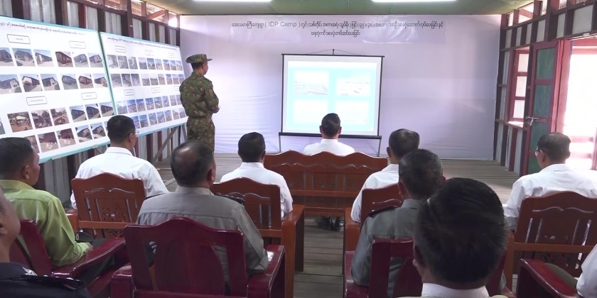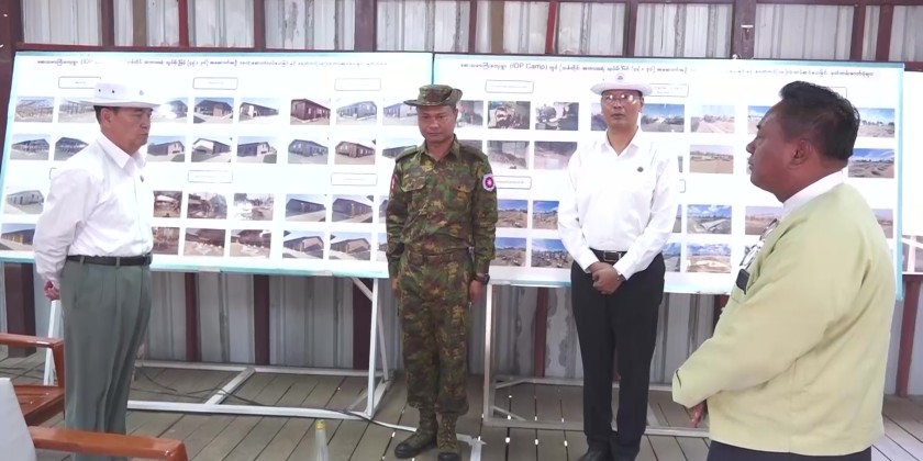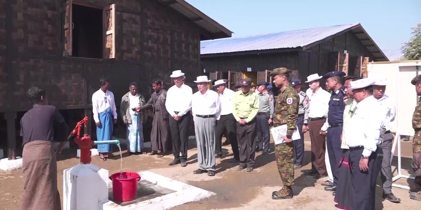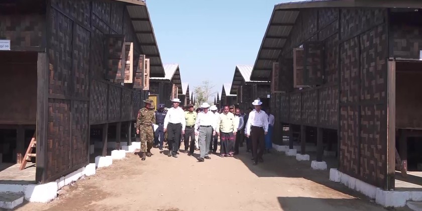 Chief Minister of Rakhine State U Htein Lin visited the Saythama Gyi IDP Camp in Sittwe Township on Sunday, to inspect the completion of construction work.