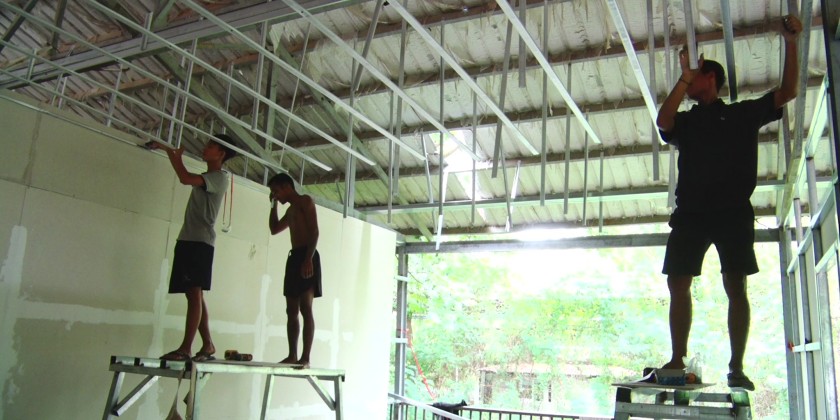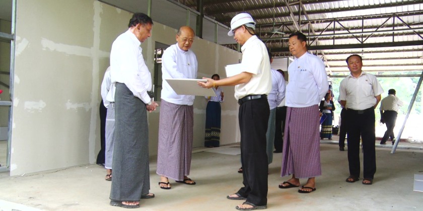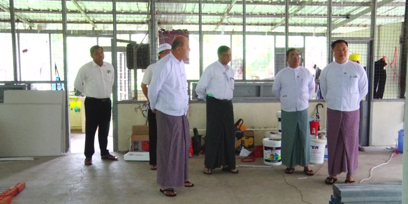Union Minister for Sports and Youth Affairs Jeng Phang Naw Taung, accompanied by concerned officials inspected the construction of temporary basha tents for quake-affected staff on Friday.