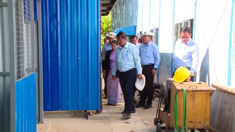 In addition, they provided the necessary support and arrangements. At the Central Training School (Nay Pyi Taw), the Union Minister and party viewed the construction of 20x120 feet two-storey Modular Houses, totalling 10 structures, which will include kitchens, shower rooms and restrooms. They also viewed the upgrading of road. he urged officials to expedite the tasks for systematic relocation of the staff families.
