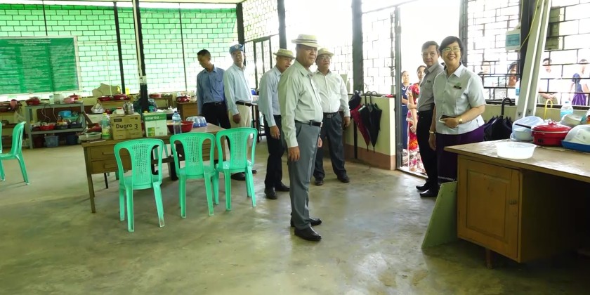 Next, the Union Minister and party visited the Basha housings and Prefabricated Modular Houses at the plots of departments in Zabuthiri, Pyinmana and Lewe Townships and inspected the relocation measures. The Union Minister also met with the staff and instructed to keep the housing area clean, with systematic throwing of waste and planting shady trees.