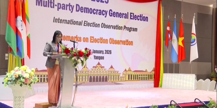 A remarks session on the observations made by international election observers who monitored Phase (3) of the Multi-Party Democracy General Election, which was concluded on January 25, 2026, was held in the morning of January 26 at the Park Royal Hotel in Yangon.