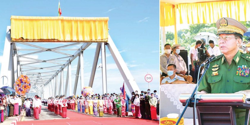 The restoring bridge’s name will bring the more national unity which was desired by Bo Gyoke Aung San. Then, the SAC chairman clarified the state responsibilities by the state administration council and said the Tatmataw guarantees democracy and federal system based union urged to bear the sprit of We Are Myanmar and put the effort for the interest of the country. Afterward, the SAC chairman, commander in chief of defense services unveiled the signboard of Than Lwin Bridge by pressing the automatic button, sprinkled the bridge stone inscription with scented water and took the documentary group photo.