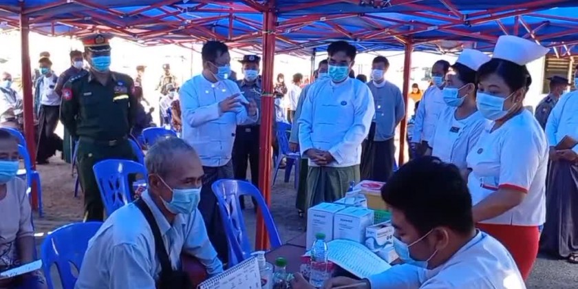 Bago Region Chief Minister U MyoSwe Win together with officials visited Bago General Hospital on Wednesday and observed giving health care services to retired civil servants in commemoration of Diamond Jubilee Independence Day with the supervision of Bago Region Government.