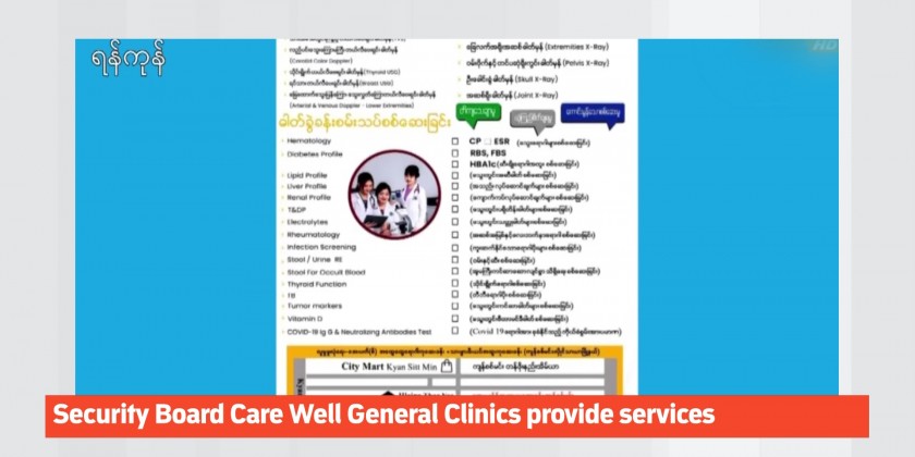 The Social Security Care Well General Clinic in Shwe Pyi Tha Township is opened at 8 am to 6 pm daily.