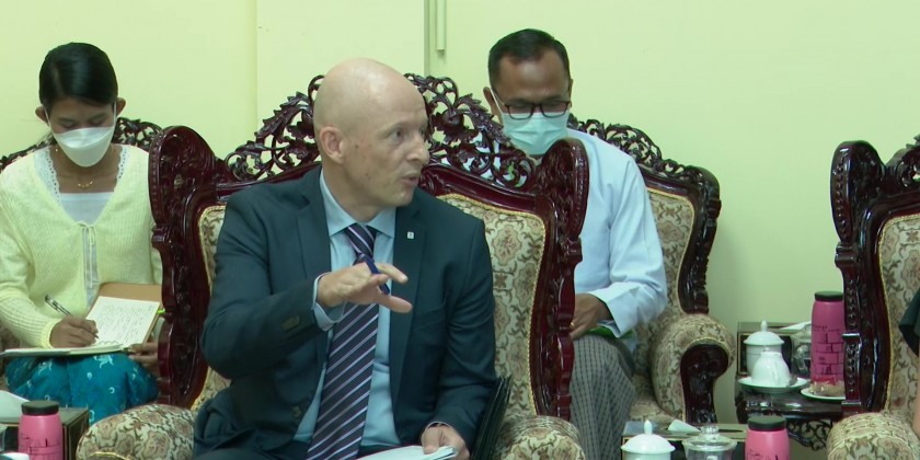 On the occasion, they discussed rendering humanitarian assistance through ICRC, IFRC and MRCS for those who need humanitarian aid because of social conflict in Rakhine State, assistance of ICRC in the COVID-19 response measures in Rakhine State, providing assistance to internally displaced people from February 2021 to date by the Ministry’s budget with the use of 114 billion kyats, humanitarian tasks being undertaken by the ICRC and Myanmar Red Cross Society, plan to sign regional agreement between the Ministry of Health and the ICRC to cooperate the tasks in Rakhine State, ICRC's prosthetic fitting programs for mine victims and cooperation in humanitarian tasks between the Ministry and the ICRC.