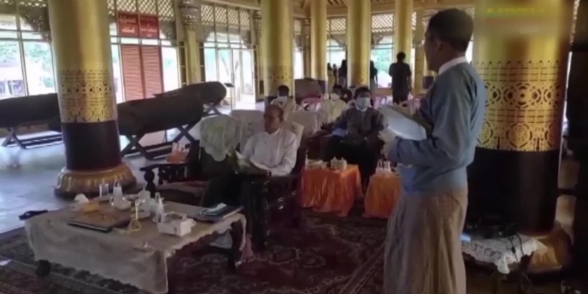 In the inspection, an official of the Department of Archaeology and National Museum reported in making researches on excavation at the 16 places of ancient mound sites in the palace compound, renovation of Bamarathana throne and Pyathat hall in original style, maintenance tasks for every year, excavation and maintenance of moat and city wall of Hantha ancient city with Bago Region Government fund, implementing Kanbawzathadi palace as historical park and salient points of the Department through powerpoint presentation.