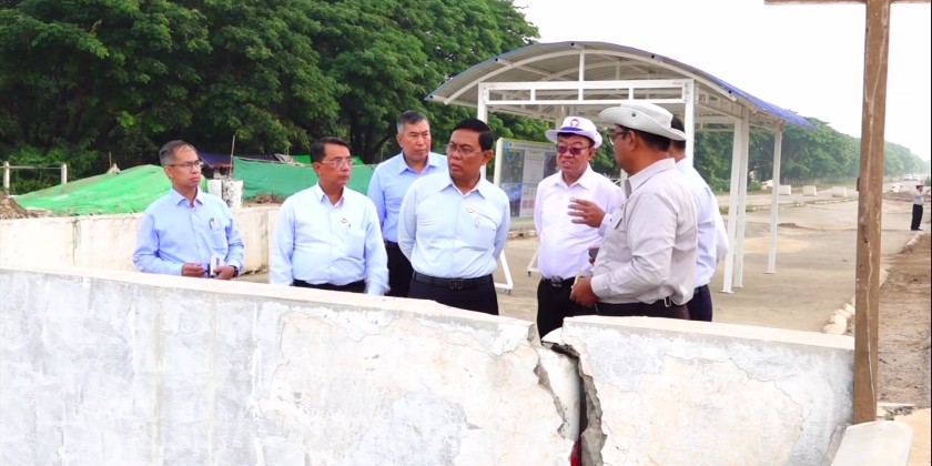 The Union Minister instructed to speed up completion, ensure strong earthquake-resistant design standards, and maintain high construction quality in accordance with national codes. He also inspected the Myitsutchaung Bridge, whihc is under repair.