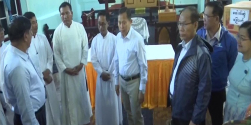 He requested that reverends and members have to join hands in rehabilitation tasks as much as they can. Then, the Vice-Senior General presented foodstuffs and aid to Christian organizations. At Thetkaepyin IDP camp, the Vice-Senior General called for active participation in rehabilitation measures and presented foodstuffs, packets of vegetable seeds and tarpaulin rolls.