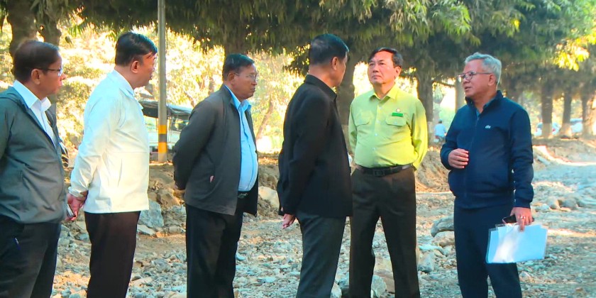 Mandalay Region Chief Minister U Myo Aung, together with regional ministers and officials, on Sunday inspected the repair works along the strand road between Shankalay Island and Shwe Khae in Amarapura and Chanmyathazi townships, which was damaged by the recent strong earthquake.