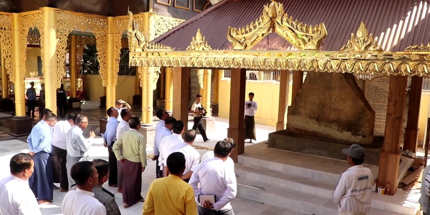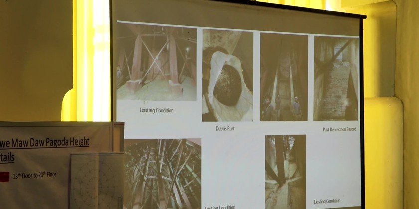 Chief Minister of Bago Region U Myo Swe Win, led a meeting at the Shwemawdaw Pagoda in Bago on Sunday, to discuss the renovation of the steel framework inside the pagoda. The meeting was attended by engineers from the Myanmar Engineering Council and officials.