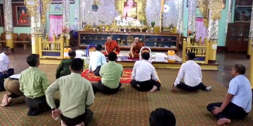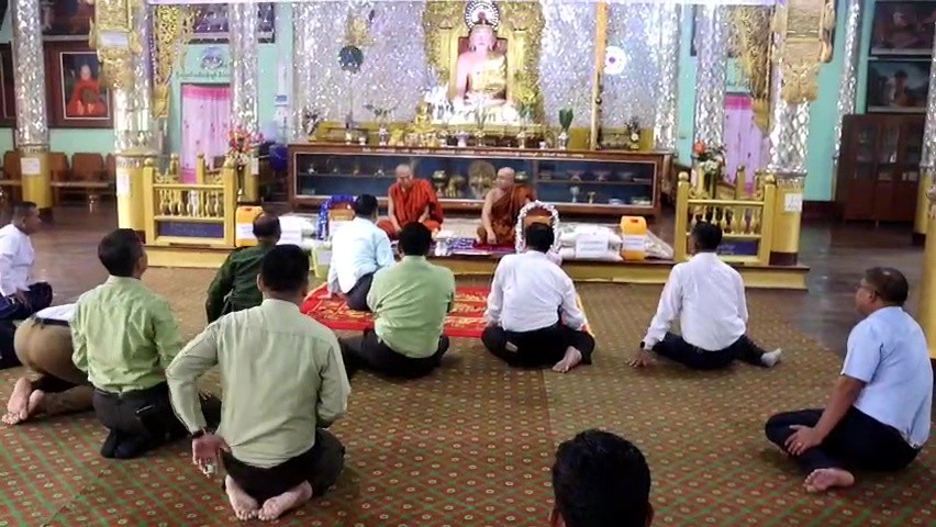 Kayah State Chief Minister U Zaw Myo Tin along with the departmental officials visited Shwe Kyaung Monastery in Loikaw on 20th of July. They paid homage to the Kayah State Sangha Nayaka Chairman Sayadaw and Secretary of Kayah State Sangha Nayaka Committee and submitted religious affairs, along with donating offertories.