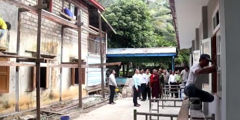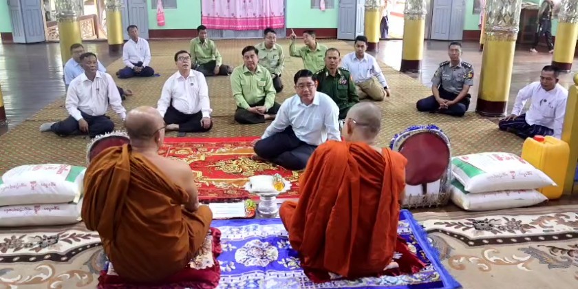 There, the Chief Minister and party oversaw the religious buildings which were destroyed by the terrorists and coordinated the requirement on renovation of the buildings. At the Min Kyaung Monastery, the Chief Minister and party viewed around the renovation processes of monk’s hostels and extended dining room under the management of state government.