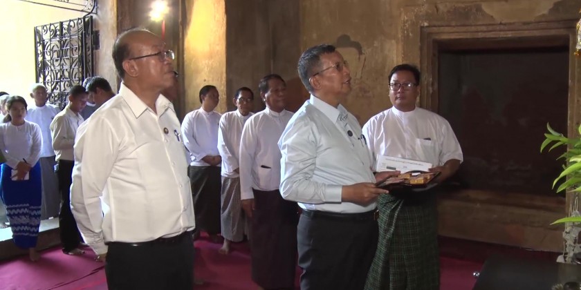 Union Minister for Religious Affairs and Culture U Tin Oo Lwin visited Bagan Archaeological Site on Sunday to inspect the work implementation on the guidance of the head of state, along with the renovation of ancient lakes. As per the instruction by the head of state, Hteelo Minlo Pagoda is in the process of upgrading works, including offering gold foils to nine Buddha images and pavement laying on the pagoda’s platform.