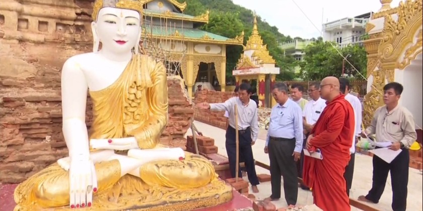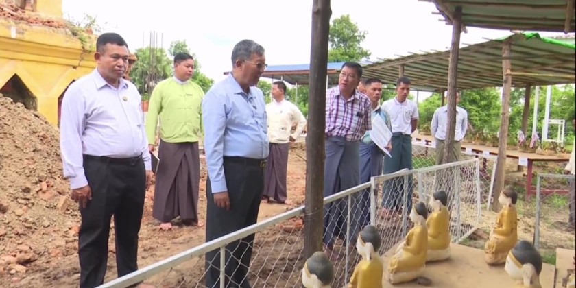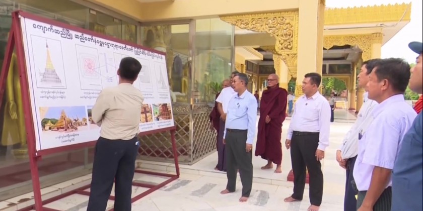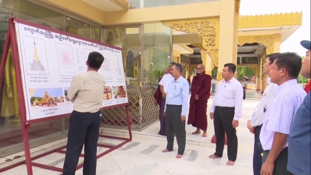 They also visited Shwe Thalyaung Hill in Kyaukse to inspect the ongoing preservation of the Kyauk Thitta Ceti, which was damaged by the quake. The Union Minister called for collaboration among departments to restore the surrounding area as well.