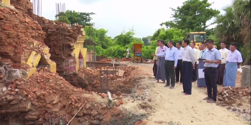 Later, they visited the Shwe Mu Htaw Pagoda, built by King Anawrahta in 395 ME, where multiple stupas and structures were damaged. Restoration is underway following SOP guidelines jointly issued by the Ministries of Culture and Construction.