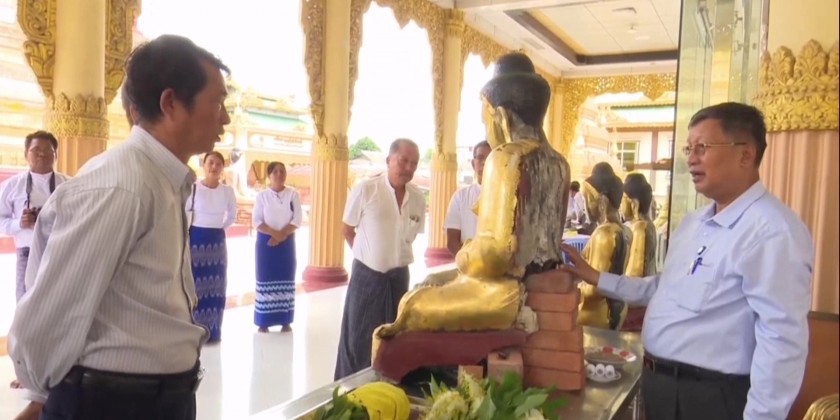 The Union Minister also attended a religious ceremony for the enshrinement of a donated bronze Buddha image and relics. The Shwe Mu Htaw Pagoda is a prominent religious site in Kyaukse, regularly visited and supported by locals, especially during full moon days and the annual Tazaungdaing festival.