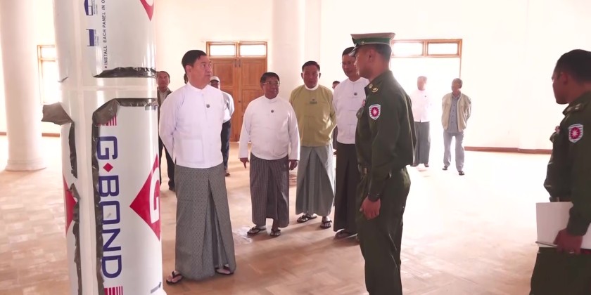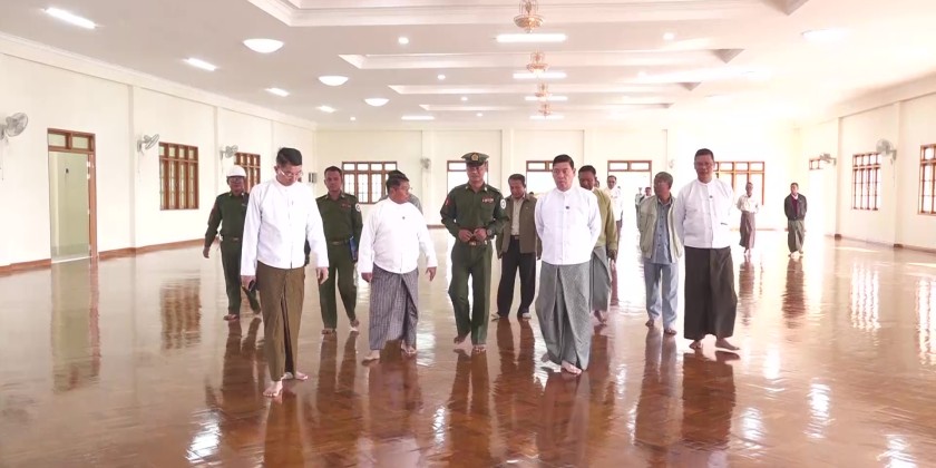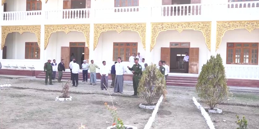 Accompanied by departmental officials, Rakhine State Chief Minister U Htein Lin inspected the refurbishment process of Sasana Beikman Tawgyi within Lawka Nanda Pagoda precinct in Sittwe Township on Friday.