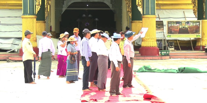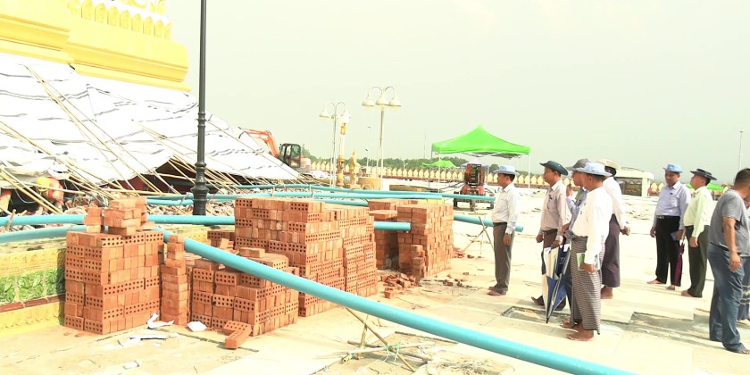 Chairman of Nay Pyi Taw Council U Than Tun Oo and officials visited Uppatasanti Pagoda in Nay Pyi Taw on Sunday to oversee the repair works of damaged areas in the pagoda compound, caused by the severe earthquake.