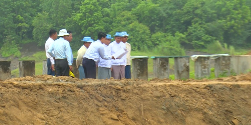 Union Minister for Agriculture, Livestock and Irrigation U Min Naung along with the Deputy Minister U Bo Bo Kyaw inspected the renovation works of Ottarathiri reservoir on Kyauk Oh Creek in Nay Pyi Taw on July 3rd.