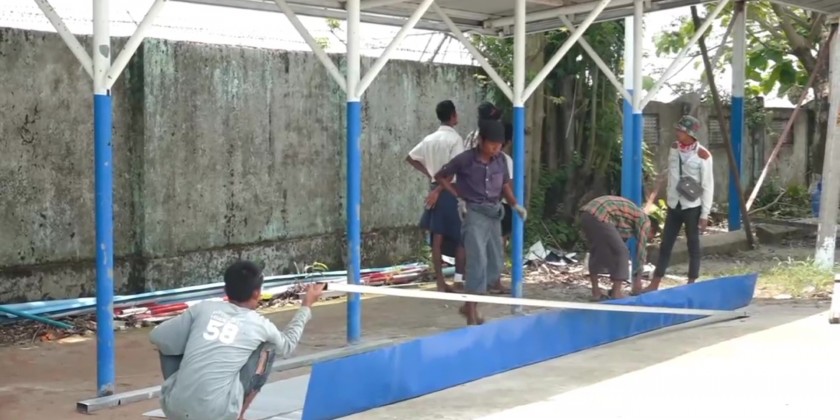 The tearing off the roof, peeling of the galvanized iron sheets and falling down of ceiling took place at almost every school building of the Technical High School due to the very severe cyclonic storm "Mocha" made landfall on 14th May. The Myanmar Licensed Contractors Public Co., Ltd is undertaking the rehabilitation and reconstruction works of the Government Technical High Schools (Sittwe).
