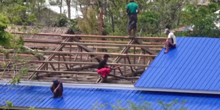 Renovation In-Charge, Thet Oo Htin said "As in the priority place, the roof repairing works have been finished for nearly 16 out of 19 buildings here in Government Technical High School (Sittwe), it is completed at 85%. We have only to continue for the remaining three buildings and car stand."