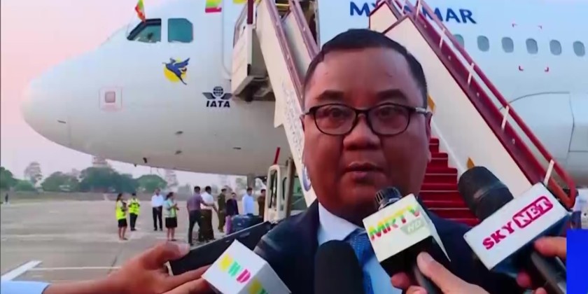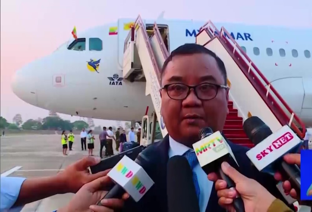 The Leader of the Information Team of State Administration Council Maj-Gen Zaw Min Tun accompanied Myanmar High-Level Delegation led by the Chairman of State Administration Council Prime Minister on the official State visits to the Russian Federation and the Republic of Belarus, replied to queries raised by media at the Nay Pyi Taw Airport in the evening on March 9 after arriving at the airport by the High-Level Delegation.