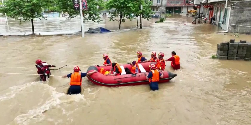 Firefighters used rubber boats to reach the stricken residents and evacuate them to safety. Meanwhile, major floods were also reported on Sunday morning in a village of Chongzuo City. Local firefighter departments dispatched rescuers on rowing kayaks to reach three trapped villagers, where the water reached up to 80 centimeters. They transferred them to safety in just over 20 minutes.