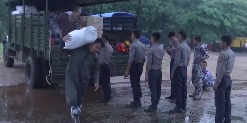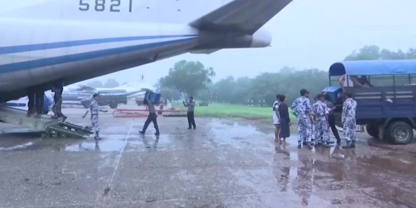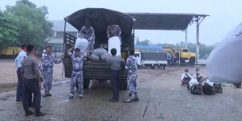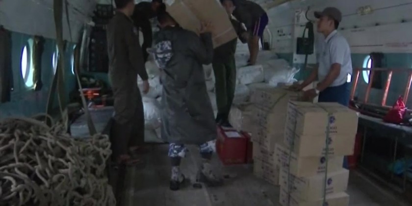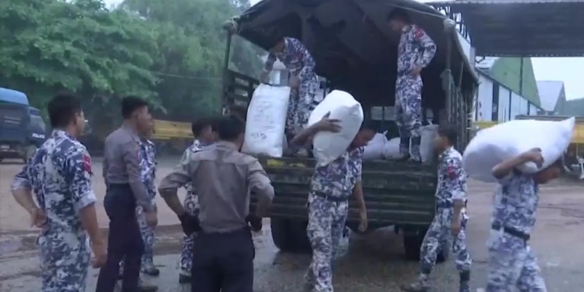 Foodstuff and relief items donated by families of Tadmadaw (Army, Navy and Air) and well-wishers and supplies provided by the National Disaster Management Committee are being transported to the affected areas by Tadmadaw aircrafts and navy vessels.