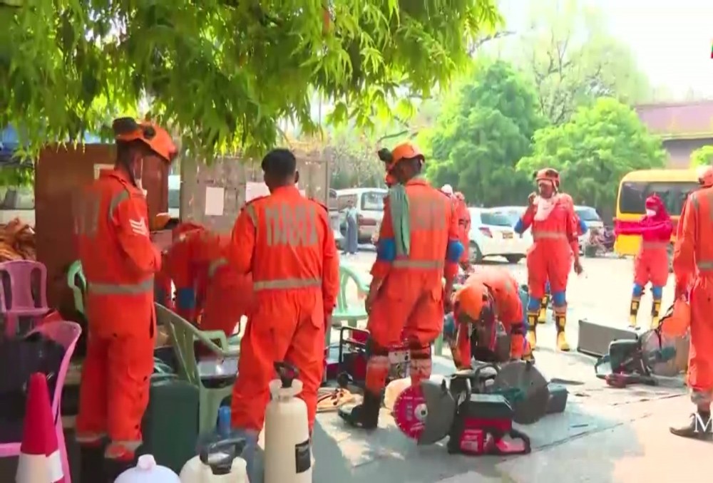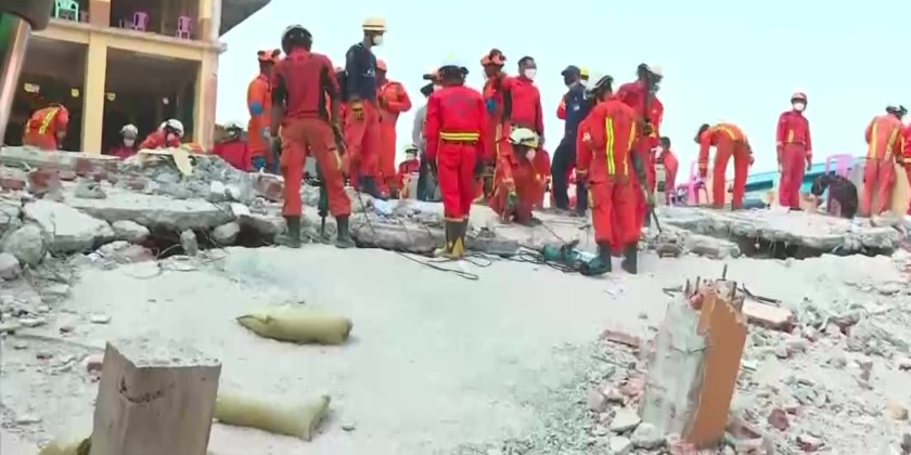 In Mandalay, rescue operations are conducting at the Masoyein Taik Thit where the members of the Sangha who sat for the Dhamma Cariya Exam were trapped under the collapsed building.