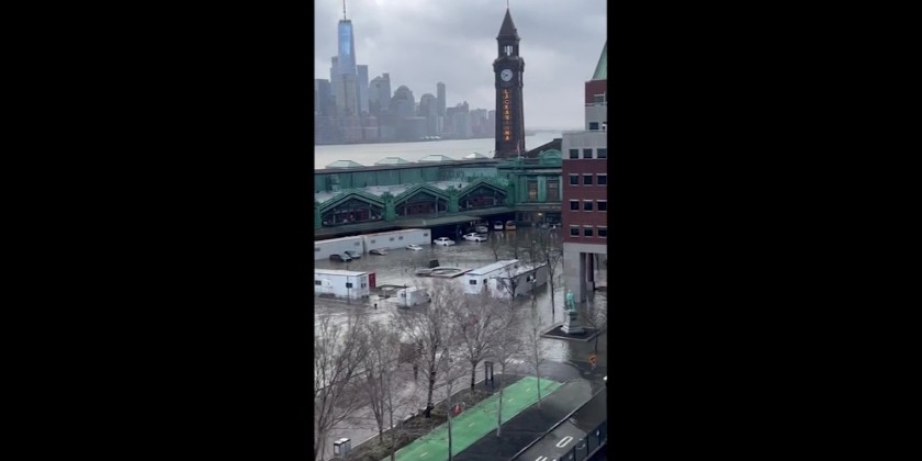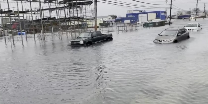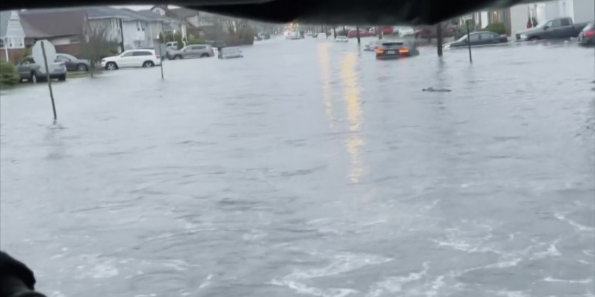 Rescue crews drive around flooded Long Island