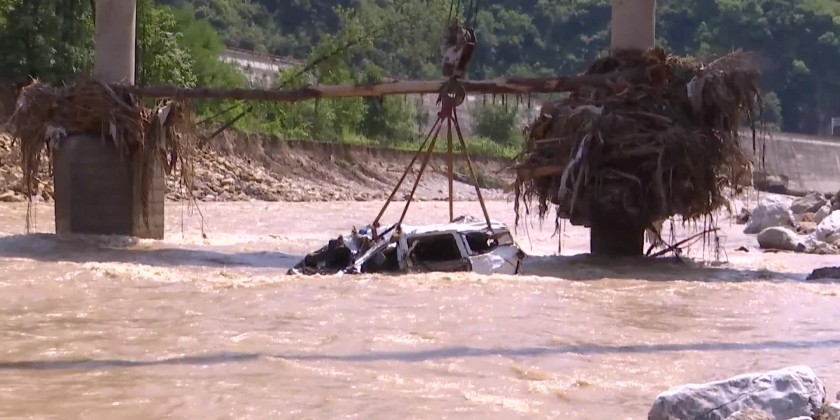 The bridge located in Shangluo City, partially collapsed due to a sudden downpour and flash floods on Friday. As of Saturday noon, serve cars had been recovered and 12 people found dead, with one person rescued, said the provincial Party committee. On Sunday, the rescuers found two vehicles which sank to the river during the accident and two of them were pinpointed four kilometers downriver from the accident site.