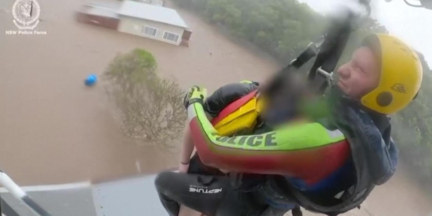 Police have pulled two bodies from floodwaters on the Mid North Coast, a river-braided region of rugged hills and fertile valleys about 400 kilometres north of Sydney. Authorities launched a major search and rescue mission as people clambered atop cars, houses and highway bridges to escape the tide of muddy water.