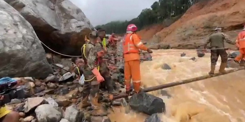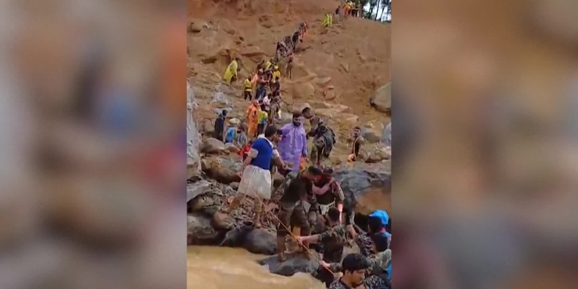 Days of torrential monsoon rains have battered the southern coastal state of Kerala, with blocked roads into the Wayanad district disaster area complicating relief efforts. Several who managed to flee the initial impact of the landslides found themselves caught in a nearby river that had burst its banks. The state government announced that more than 3,000 people were sheltering in emergency relief camps around Wayanad district.