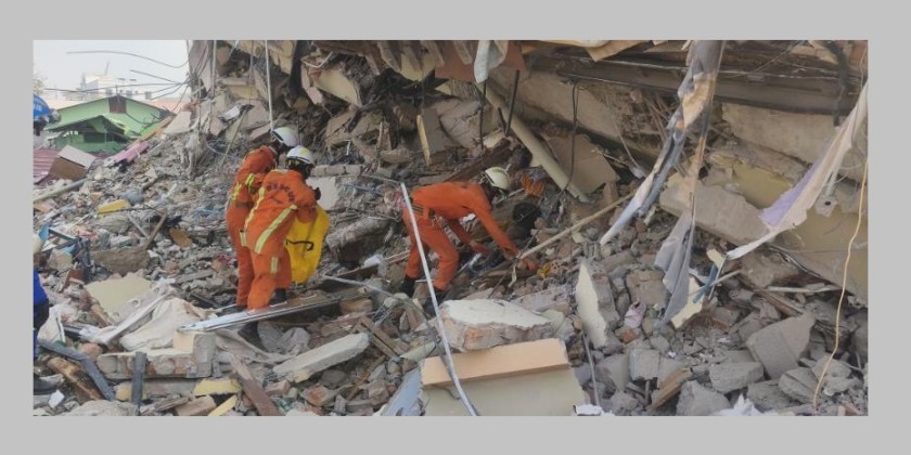 On March 31st, the rescue team has successfully recovered two survivors at the collapsed site of Sky Villa building. They also found two dead bodies under the debris. The rescue measures are still ongoing with the collaborative efforts of the Fire Brigade of Myanmar and the Chinese Rescue Team.