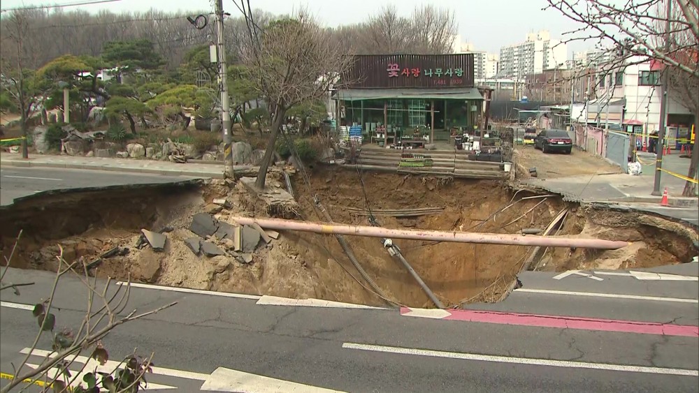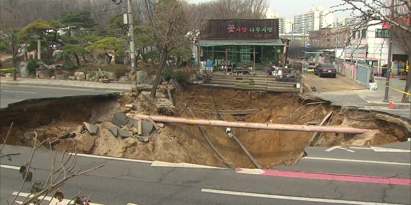 A massive sinkhole, 18 meters wide and 20 meters deep, opened up near an intersection in Seoul’s Gangdong-gu district on March 24 around 6:30 p.m.