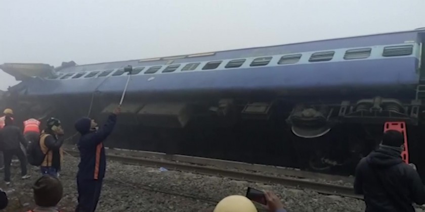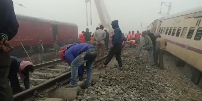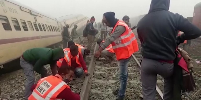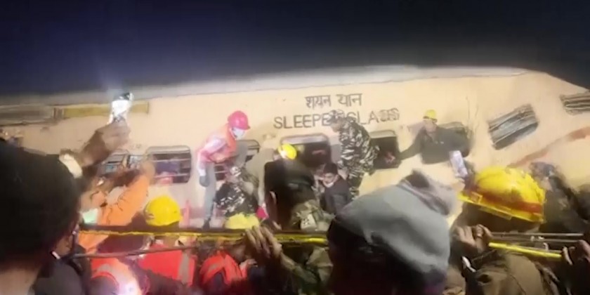 Rescuers pull out bodies from derailed train in India