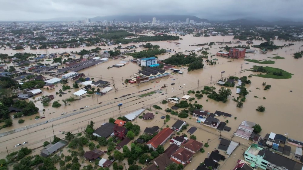 Severe flash flooding has paralyzed the southern Thai district of Hat Yai, leaving hundreds of residents stranded, many confined to the second floors of their homes for up to three days, as continuous heavy rain and poor drainage overwhelm the area.