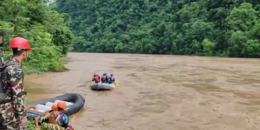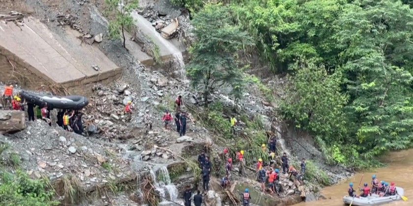 Nepal authorities on Friday evening temporarily halted the search for at least 63 people missing after a landslide triggered by heavy monsoon rains swept two buses off a highway and plunged them into a river. Search and rescue teams on the riverbank spent the day struggling to scour the muddy waters due to fierce currents made worse by the rains.