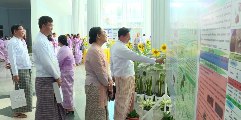A research paper reading session and poster exhibition marking the 101st anniversary of Yezin Agricultural University was held on December 22 at the Convocation Hall of the university. The ceremony was attended by the Deputy Minister for Agriculture, Livestock and Irrigation, Dr. Tin Htut, Directors General from relevant departments, Rectors, invited guests and undergraduate and postgraduate students.