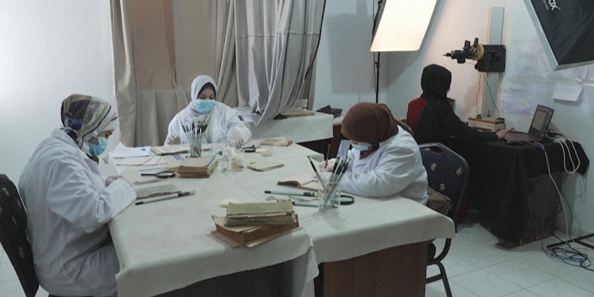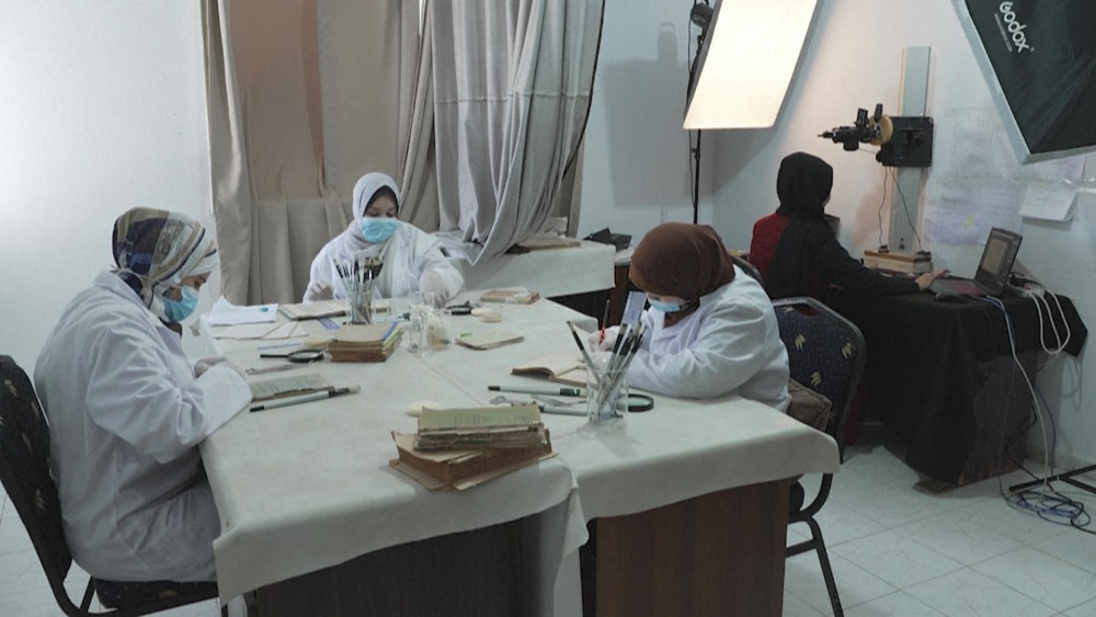 Nine young female Palestinian researchers restore and digitize old manuscripts and documents as part of a project to preserve Palestinian cultural and historical heritage in Gaza City.