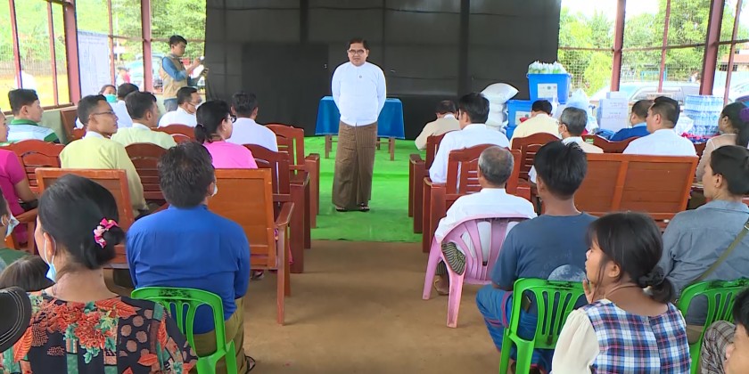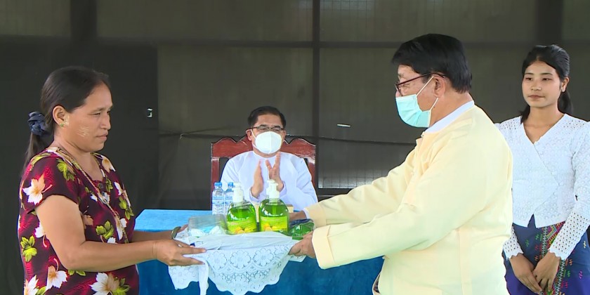 Kachin State Chief Minister U Khet Htein Nan and officials provided assistance to 6 households who were relocated at their request to Ngwe Pyaw Smart Village in Myitkyina.