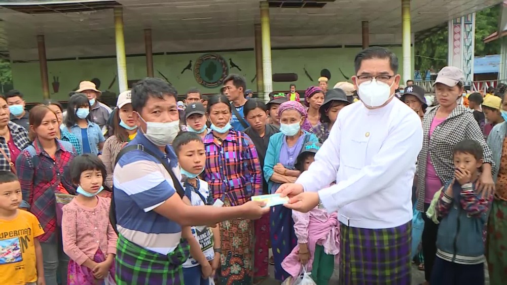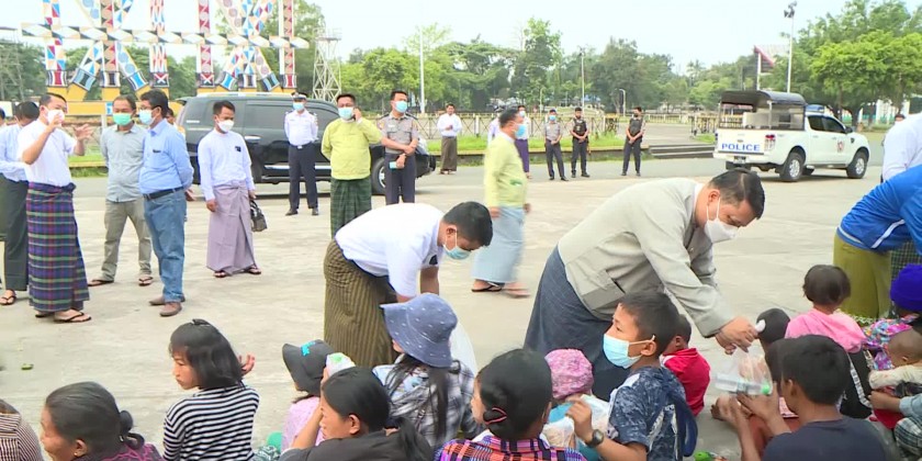 Afterward, the Kachin State Chief Minister greeted and gave words of encouragement to the men returnees from the Peopleās Republic of China through Kanpaitee border gate who shelter in Quarantine center established in the indoor stadium of the district sports and physical education departmentĀ and women returnees who shelter in Quarantine center established Thitagu Eye Hospital and provided 300,000 Kyats of cash assistance to the mothers of small children and expectant mothers, also cash assistance tot the departmental staff who care the returnees and coordinated necessaries with the officials to fulfill the requirements.