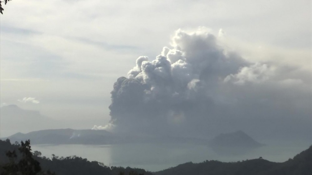 Philippines' Taal Volcano in Batangas province continued to spew a cloud of ash on Monday. There were no immediate reports of injuries or damage, but authorities scrambled to evacuate more than 6,000 villagers from an island in the middle of a lake where the volcano lies, and tens of thousands more from nearby coastal towns, officials said. The volcanology institute raised the danger level around Taal three notches on Sunday to level 4, indicating "a hazardous eruption may happen within hours or days".