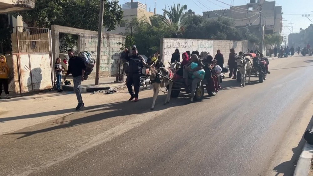 On donkey carriages, by car, bicycle or simply by foot, thousands of residents from eastern Khan Yunis, in southern Gaza, on the border with Israel, are fleeing the area after fighting resumed between Israel and Hamas. Fighting resumed in Gaza on Friday immediately after the expiry of a week-long truce between Israel and Hamas.