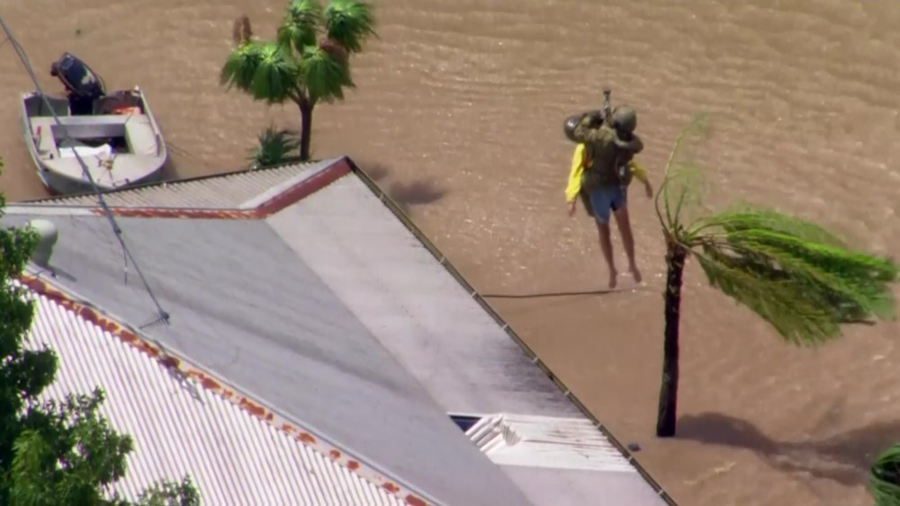 Australian Defence Forces rescued stranded residents by helicopter Tuesday after severe flooding in Australia's most populous state. The military helped airlift people left stranded on roofs with homes left near totally submerged following extreme rainfall in the northern areas of New South Wales.