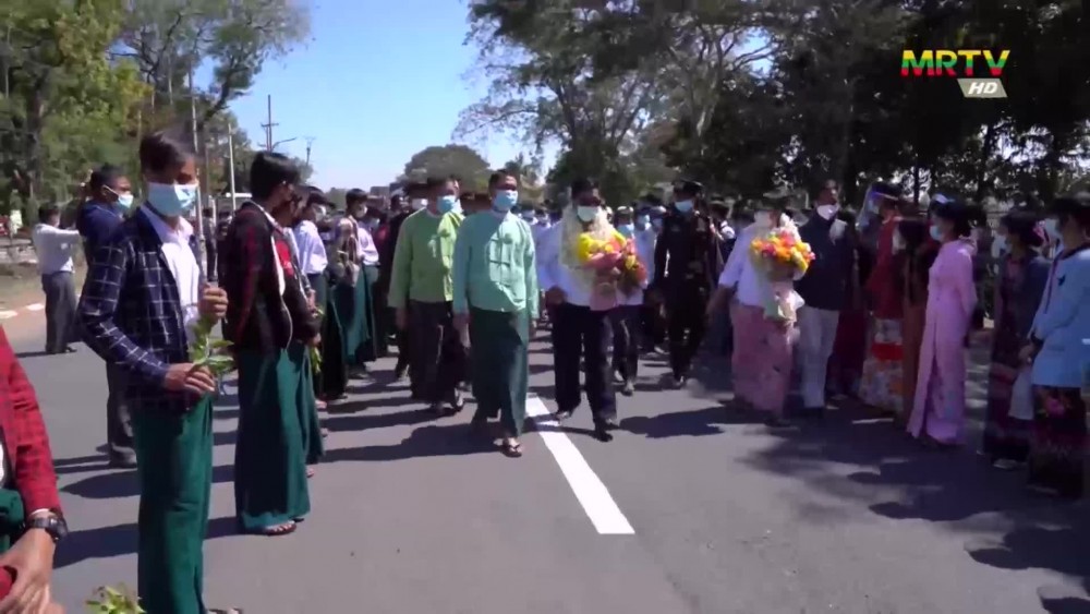 The winning troupe arrived in Magway on Wednesday afternoon and they were welcomed by the regional ministers, departmental officials, students and locals at the entrance of Magway.