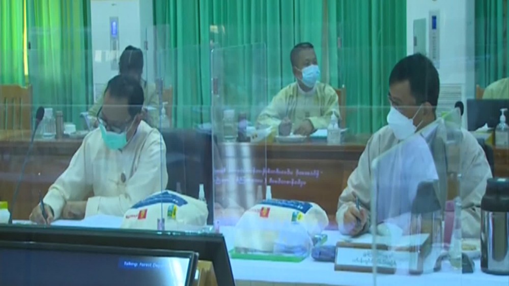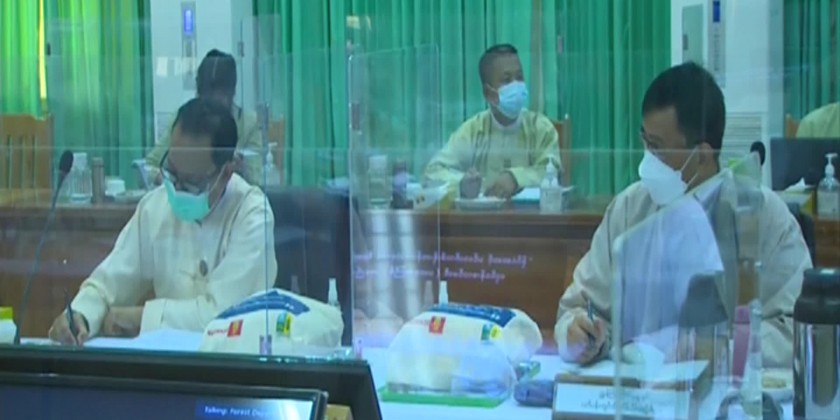 Chairman of the Committee Union Minister for Natural Resources and Environmental Conservation U Khin Maung Yi, Vice Chairman Union Minister for Agriculture, Livestock and Irrigation U Tin Htut Oo and committee members attended the meeting.