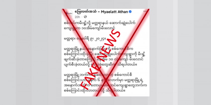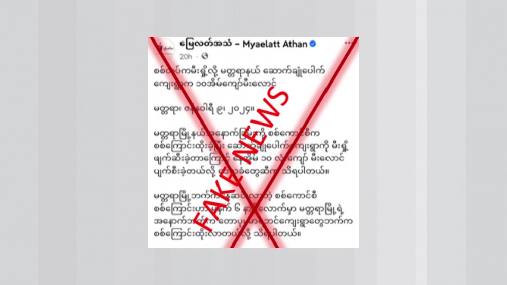 It is found out that a fake news is spreading on social media, stating that due to the arson attack by the Security Forces, more than 10 houses were destroyed by fire in Saukchonpauk Village of Madaya Township in Mandalay Region on January 9.